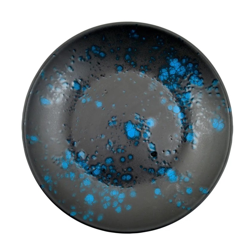 Impresionante y muy atractiva pieza reforzada, realizada en porcelana de alta calidad, y decorado manualmente con técnicas artesanales, aplicando por otro lado las últimas tecnologías en cuanto a productos reactivos. Esta técnica de decoración, que comparte toda la serie Reactiv, concede a cada pieza una personalidad única y una apariencia completamente artesanal, no existen dos piezas iguales. Así mismo, esta cuidada selección de esmalte, materia prima, y el doble proceso de cocción a temperaturas superiores a 1390 ºC, confiere a la pieza, además de una ausencia completa de porosidad, una excelente resistencia al rayado y envejecimiento producido por el uso diario y las duras condiciones del lavado a máquina.