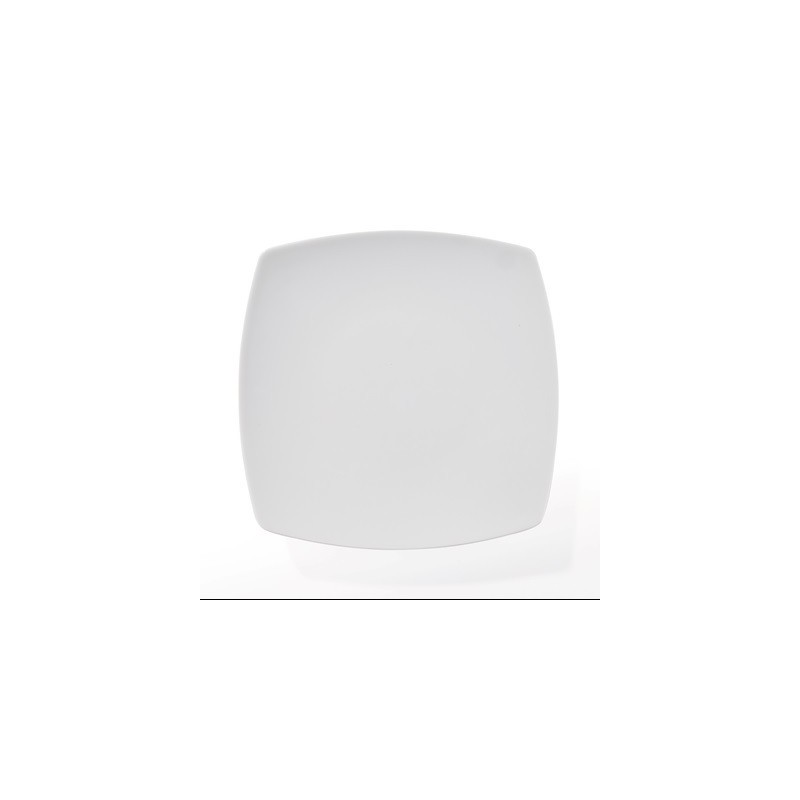 Plato cuadrado de porcelana blanca dura, con esmalte vitrificado de alta resistencia. El proceso de cocción a temperaturas superiores a 1390 ºC, confiere a la pieza una excelente resistencia al rayado y envejecimiento producido por el uso diario y las duras condiciones del lavado a máquina. Perteneciente a la Serie Stilo, que en caja en cualquier tipo de ambiente tanto formal como desenfadado, y actualmente cuenta con un amplio uso tanto en entornos profesionales como domesticos, por su excelente comportamiento, resistencia y atractivo diseño.